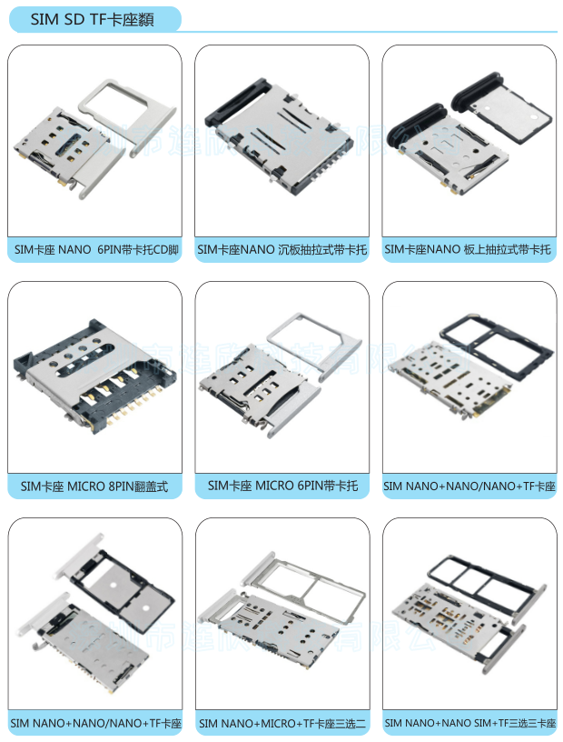 SIM卡座带卡托在电子配件市场发展中占有重要地位,卡托能有更好的锁卡作用,特别是多合一的卡托,更加方便产品能同时能使用上多张SIM卡,还能节约不少空间,目前比较受欢迎带卡托的多功能SIM卡座有:SIM NANO+TF/NANO+NANNO三选二卡座,SIM卡座三选二NANO+MICRO+TF,NANO SIM卡座带卡托,MICRO SIM卡座带卡托,SIM卡座抽拉式带卡托,SIM卡座沉板带卡托等,只要规格封装合适就能在多个电子产品领域上使用,比如:通讯数码产品、智能设备、健康医疗设备等,我们可知,SIM卡座是储存数据必要电子元器件,包括如今非常热门的平板电脑,电脑教育机上都是少不了SIM卡座。