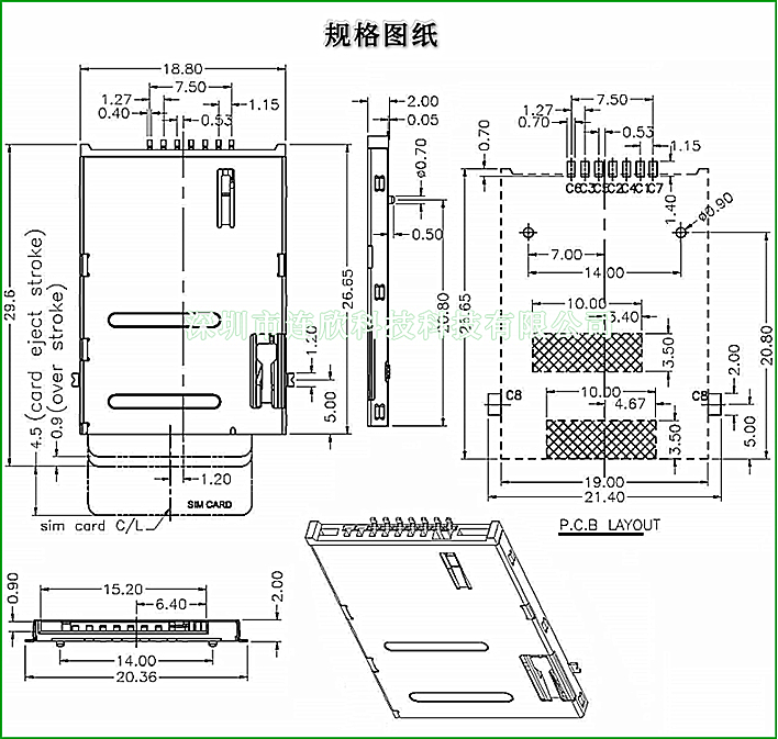 SIM卡座自弹式6+1PIN/8+1PIN C款 SIM卡座PUSH自弹式,连接器贴片式 SMT