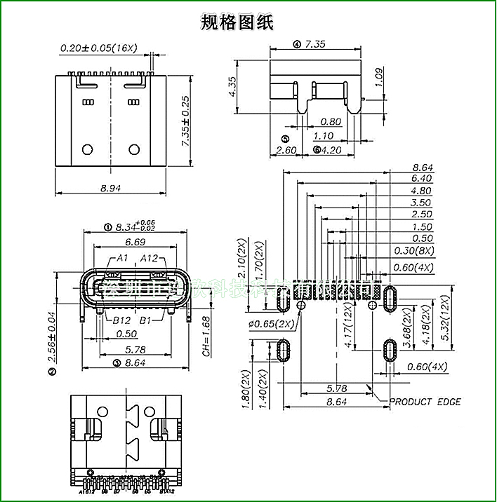 - TYPE C连接器贴板式
