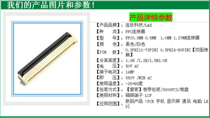 FPC连接器,0.3MM间距FPC连接器,FPC座子,FFC连接器,排线座子,掀盖式FPC-连欣科技 - 副本