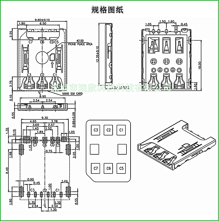NANO SIM卡座抽拉式 SIM卡座带CD脚 深圳市连欣科技有限公司