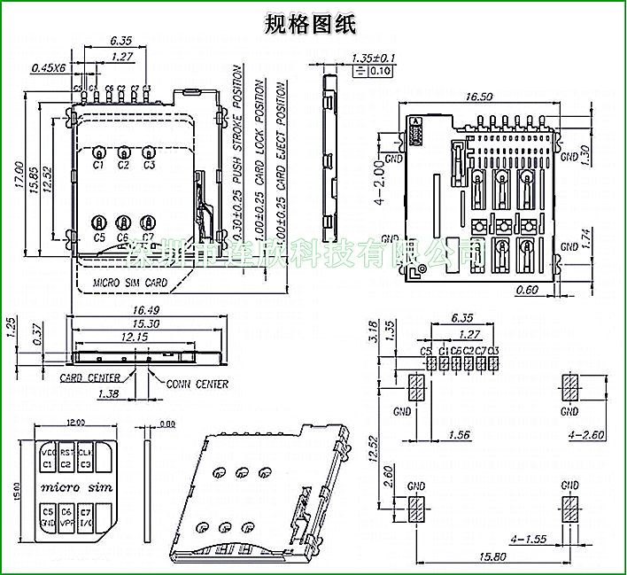 SIM卡座生产厂家直销MICRO SIM卡座6PIN自弹式卡座 - 副本