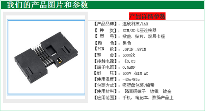 - 产品描述:深圳市连欣科技有限公司专业生产销售-深圳沙井【机顶盒专用】8PIN SMART CARD工字型(IC卡卡座)贴板式厂家 ,欢迎来电详询:王小姐18688784599 QQ:2099385828 连择连欣连接器,连择放心合作伙伴!